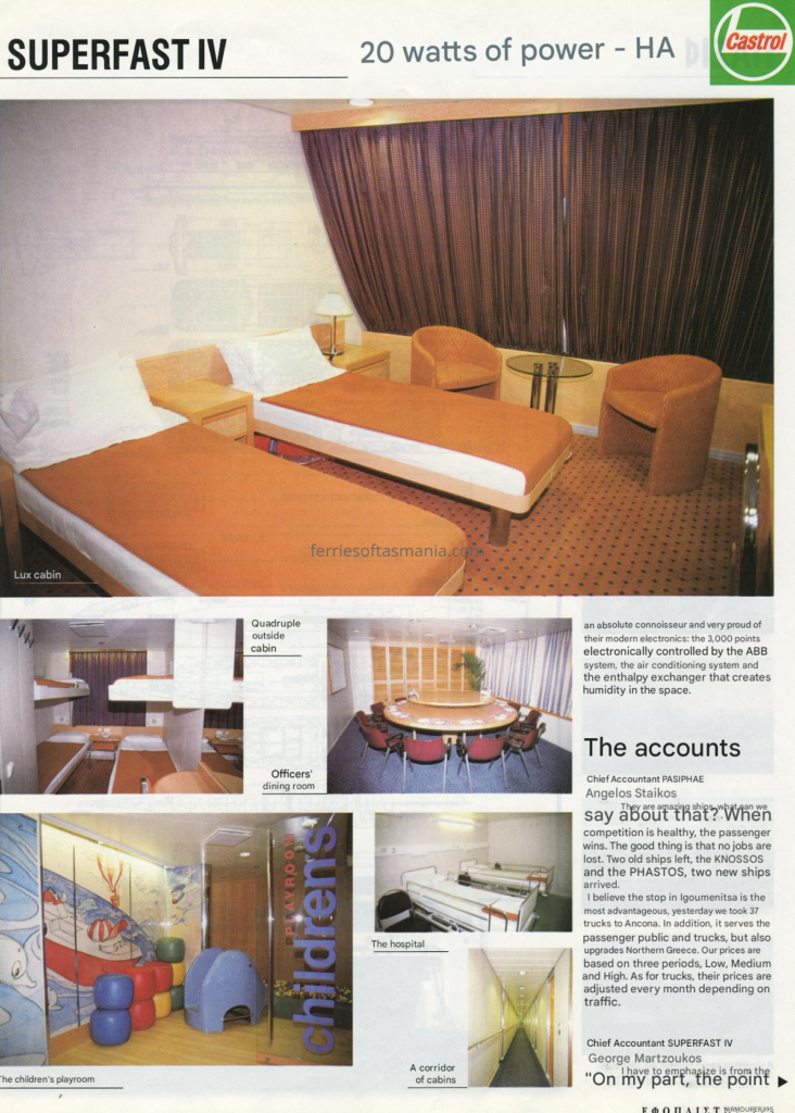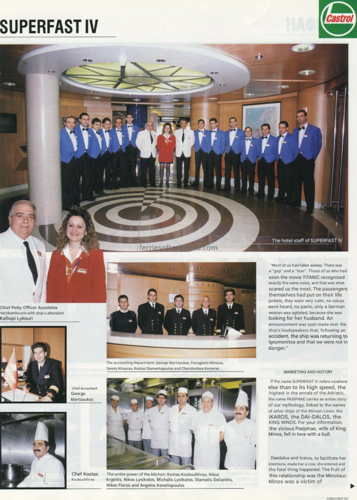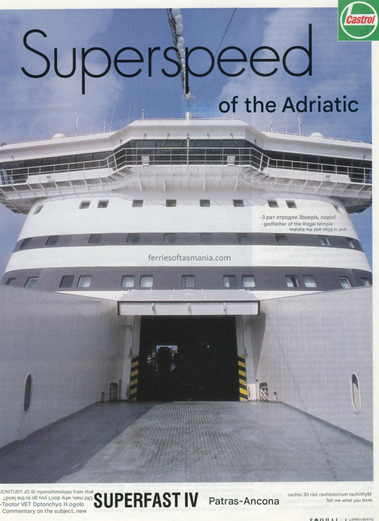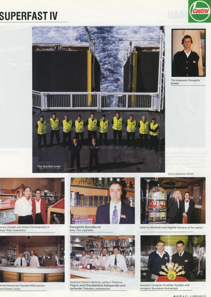 The following in an article by Greek publication on the Superfast IV (Spirit of Tasmania I) in her time on the Adriatic and about her crew. Its translated from Greek to English, but somethings might not make 100% sense to some. They are talking about some Minoan lines ships in there as well.