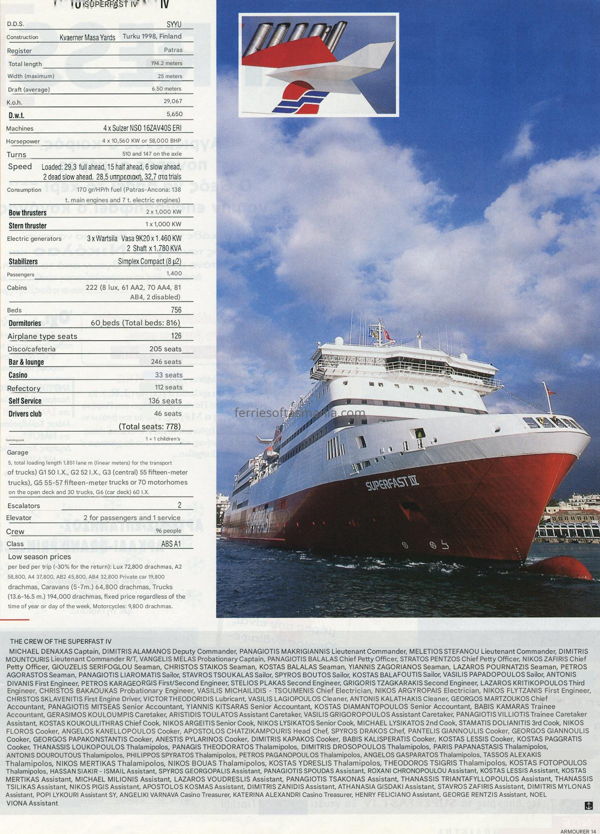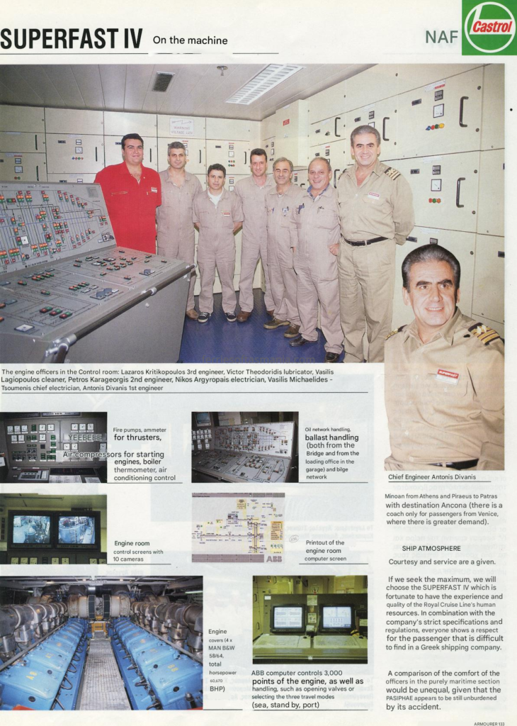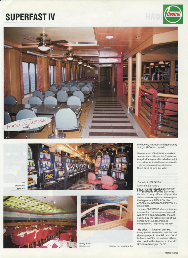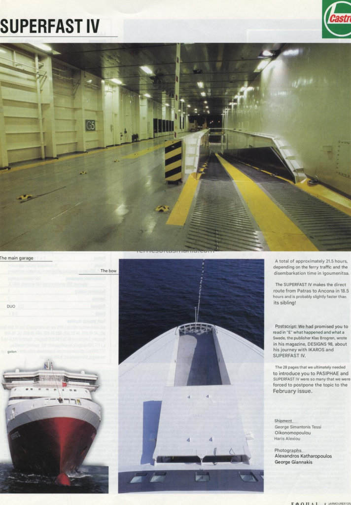The following in an article by Greek publication on the Superfast IV (Spirit of Tasmania I) in her time on the Adriatic and about her crew. Its translated from Greek to English, but somethings might not make 100% sense to some. They are talking about some Minoan lines ships in there as well.